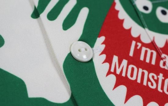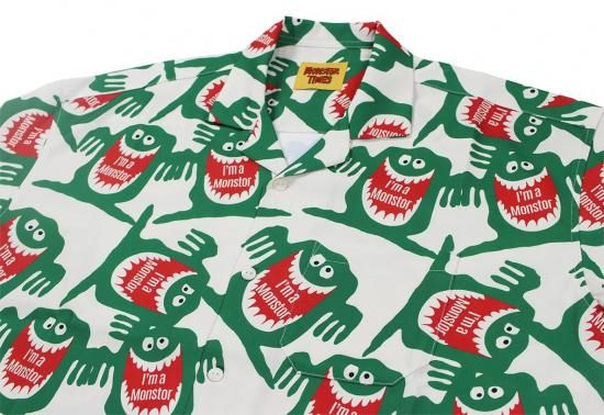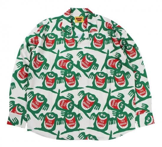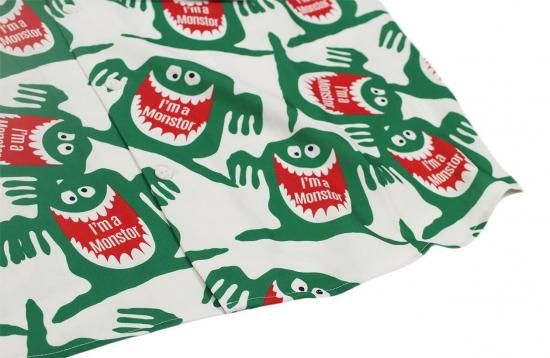 1960年代後半にお菓子メーカーから発売されたジュースの広告から誕生した“喉の渇きを襲うモンスター”を全面に配した総柄プリントシャツ。