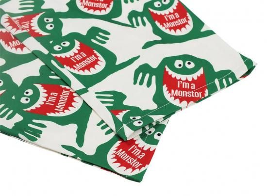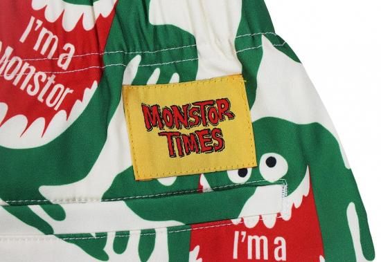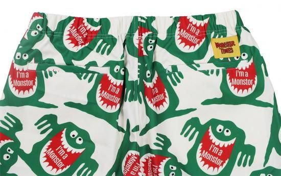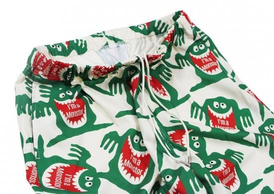 1960年代後半にお菓子メーカーから発売されたジュースの広告から誕生した“喉の渇きを襲うモンスター”を全面に配した総柄プリントのイージーパンツ。