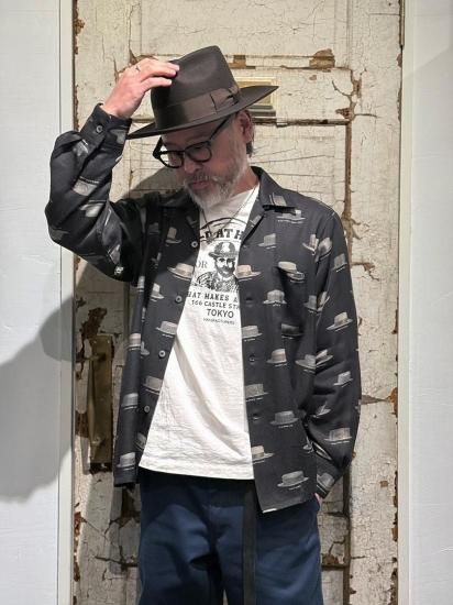 -Hat Pattern Open Collar Shirt L/S Shirts-