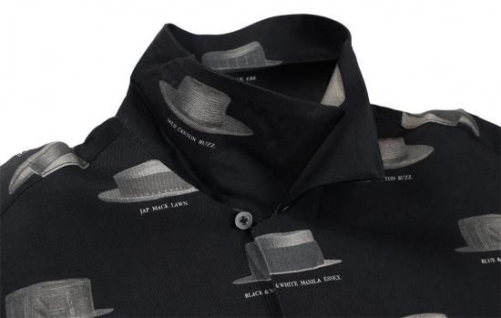 時代を越えても色褪せない“粋”と“遊び心”を、ハットの総柄に落とし込んだ一枚。まるで1950年代の洒落者たちのクローゼットから見つけたような、ノスタルジックで洒脱な一枚。ヴィンテージポスターから着想を得たハットの総柄は、他にはないオリジナルデザイン。クラシカルなフェルトハットから、リゾートムード漂うパナマハットまで、さまざまなスタイルの帽子がシャツ全体にリズミカルに踊ります。