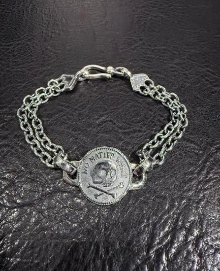 スカル&クロスボーンは、その場所、物事に骨を埋める覚悟、意思。海賊船で掲げるドクロマークの旗は『この船と共に死す』など、そのものに一生を掲げる、一途な意味。
